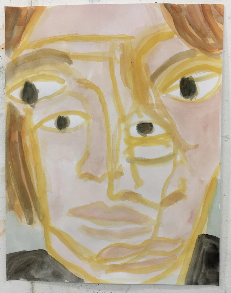 Untitled (Echo Face), 2021, gouache on paper, 12x9 inches/ 30x23 cm